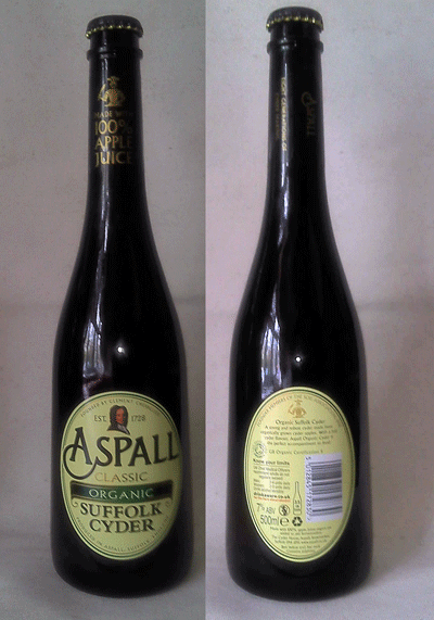 I haven't said very much about Aspells Organic yet, have I! Well, to start it has a nice cidery aroma, although its pretty fizzy (this dies down pretty quickly once its poured out). To taste, Organic gives a good sharp hit - more eastern counties than the other Aspall ciders I have tried so far (and far more than the Thatchers Cox!!). There are also a few tannins in it, although the appley, desert flavour is the boss.